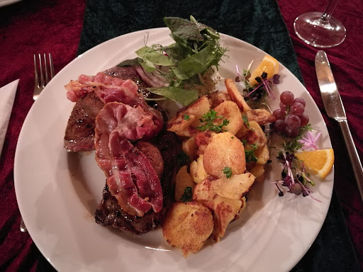 Das Essen ist gut und auch schön angerichtet. Alles was jedoch in Form einer Deko auf dem Teller beim Gast ankommt, sollte auch als solche auf der Karte benannt werden! Beispielsweise beim Zwiebelrostbraten: hier besser von Steinpilzchampignondekoration in der Karte sprechen! Dann gibt es keine Enttäuschungen! Es ist nicht unbedingt üblich, die Dekoration in jeder Mikroeinheit auf der Speisekarte zu erwähnen, aber diese nicht als solche klar zu definieren - das ist zumindest dann wichtig, wenn man nur drei dünne Scheibchen Champignons meint! Aus der Karte muss ersichtlich sein, was man sich zu erwarten hat. Bei meinem bestellten Gericht fehlten diese nämlich komplett! Ich machte darauf aufmerksam, dass ich die Pilze vermisse, welche auf der Karte erwähnt waren. Diese wären nicht mehr vorrätig - so erklärte man, erst auf meine Nachfrage hin! Es wurden am Ende 30 Cent vom Rechnungsbetrag abgezogen! Die Erklärung hierzu, es hätte sich ja nur um drei fehlende Scheibchen Champignons gehandelt! Wenn man diese jedoch mit dem Zwiebelrostbraten aufzählt, hier mit Steinpilzchampignons auf der Karte, diese aber nur mit drei Scheibchen - (wenn überhaupt..) auftauchen, dann schreibt doch bitte noch dazu: "drei Scheibchen" oder eben einfach Deko, das...