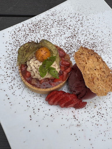 Had a lovely light summerish menu. The sous-vide cooked cod with some roe of lumpfish on a bed of crisp and juicy vegetable was delicious. The mashed potatoes (mousseline of potatoes) were tasty, though I would have combined the fish with a lighter side dish. The glas of recommended Risling, a wine of the region went well and I enjoyed it. Excellent service. We felt very welcome and appreciated as guests It was a pity that my partner's Wiener Schnitzel (veal) was very tasty but...