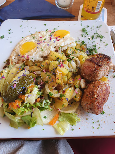 Read moreSchnöggel, ein absoluter Geheimtipp und ein tolles Projekt. Das Personal war sehr freundlich und auch unserem 3- jährigen gegenüber mehr als lieb und verständnisvoll. Das Essen kam zügig und war wirklich reichlich. Das Ambiente ist wirklich gemütlich und man wird nicht durch zu viele Tische nebeneinander erschlagen. Das Preis- Leistungsverhältnis passt. Ich würde mir an dem ein oder anderem Fenster noch einen Sonnenschutz wünschen. Sind Feiern im Haus, finden diese eine Erage oberhalb statt. Ich empfehle bei der Reservierung zu fragen. Wenn getanzt wird, ist unten ein gemütlich Essen schwierig. Das wäre aber auch alles an Kritik. Behindertengerecht und geräumig! Leider sind in der Umgebung des Restaurants viele fragwürdige Gruppen zu finden, die doch ordentlich "pöpeln" können. Das ist aber unabhängig von der tollen Leistung des Restaurants...