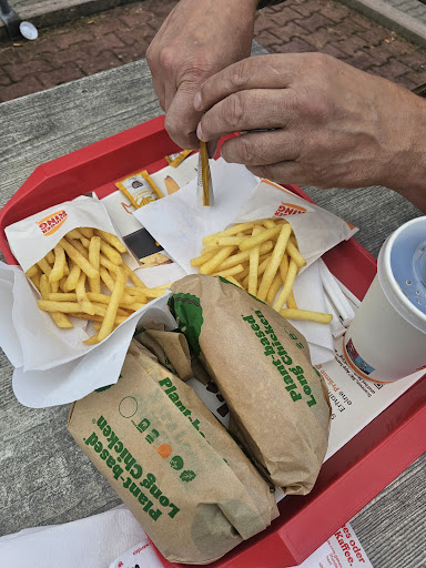 Read moreLetzten Freitag bin durch den Drive gefahren und hatte wegen Problemen mit der App die Couponnummer nicht schnell genug bereit. Beim 2. Coupon, wo ich dann die Nummer hatte, kam die Nachfrage was zu den Pommes soll und welches Getränk. Als ich sagte dass es bei dem Coupon doch gar nicht dabei ist, übernahm eine patzige Frau den „Service“. Nachdem ich nochmal nachfragte was ich nun bekomme zählte sie es auf und nannte den Preis. Direkt danach hörte man wieder den Mann sprechen „Isch geh raus und hau den“. Da hatte der, ich nenne ihn mal Pumper-Kevin, wohl sein Mikro vergessen auszuschalten 🤦♂️ hier scheint es noch gründlichen Schulungsbedarf in Sachen Freundlichkeit, Service und Umgang mit Technik zu geben. Das kann doch nicht so schwer sein. Von den beiden Mitarbeitern kam weder eine Entschuldigung oder ein Kommentar dazu (ich hatte drauf hingewiesen dass man ihn noch hört). Stattdessen grinsten beide fröhlich hinter dem Schalter und die Frau signalisierte Kevin noch dass er rausgehen soll. War mein letztes Mal dass ich diesen BK angefahren habe. Ich weiß dass man für so einen Job nur schwer qualifiziertes Personal findet, aber es kann doch nicht so schwer sein zumindest dem Kunden gegenüber freundlich zu sein und zu lernen das Mikrofon zu bedienen. Mich bediente...