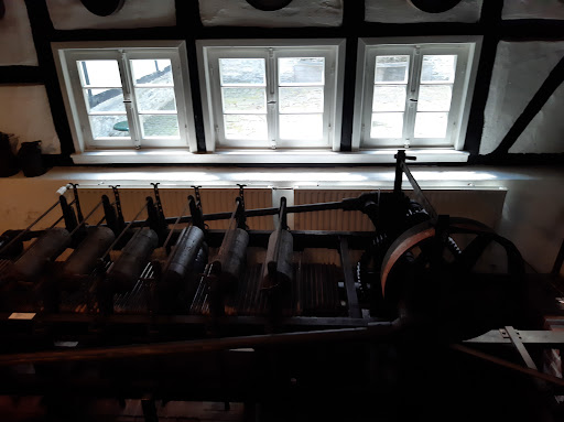 Read moreDas Ambiente ist sehr nett. Wer auf alte Fachwerkhäuser steht kommt hier auf seine Kosten. Diese Häuser beinhalten ein nadelmuseum. Ein Spielplatz für größere Kinder ist vorhanden. Im Haus wird über 3 Etagen serviert. Der Inhaber ist ein wenig muffig, also gewöhnungsbedürftig aber grundsätzlich ganz nett. Er hat unser Essen für 3 Personen allein zubereitet und hat dafür 40 Minuten gebraucht, was in Ordnung war. Ich hatte eine hühmersuppe vorweg, die etwas zu kräftig schmeckte. Die Hauptspeise war eine Champignonpfanne, die leider sehr fettig war. Bratkartoffeln waren, darüber das Gemüse und oben drauf die bepratenen Champignons. Weder die Bratkartoffeln, noch die Champignons waren knusprig gebraten. Im Teller schwimme zum Schluss eine fettfütze von 3mm Tiefe. Das ist definitiv zu viel. Das Gemüse, paprika und kirschtomaten waren OK. Leider muss ich viele eindrücke hier bestätigen, das Essen ist zu kräftig gesalzen und zu...