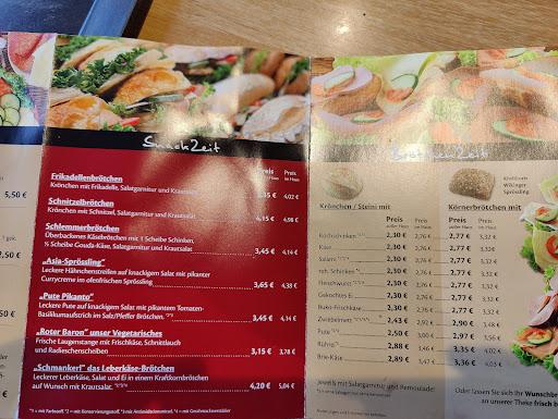 Vor 3 Wochen da gewesen und da sind mir die versiffte Theke (personalseitig) und der Boden linker Thekenteil (kundenseitig) aufgefallen. Heute die Krönung: Theke versifft wie nie zuvor + der Frau die, die Brötchen aufbackt fallen zwei Rohe in den Dreck, legt sie einfach mit zum aufbacken aufs Blech! Das wars...