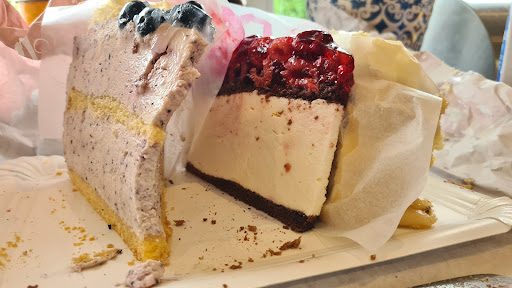 Zum Kuchen: Leider für den Preis etwas traurig, dass man augenscheinlich gefrorene Himbeeren bekommt…kenne ich auch leider anders. Schmeckten absolut wässrig und teils irgendwie noch leicht gefroren.