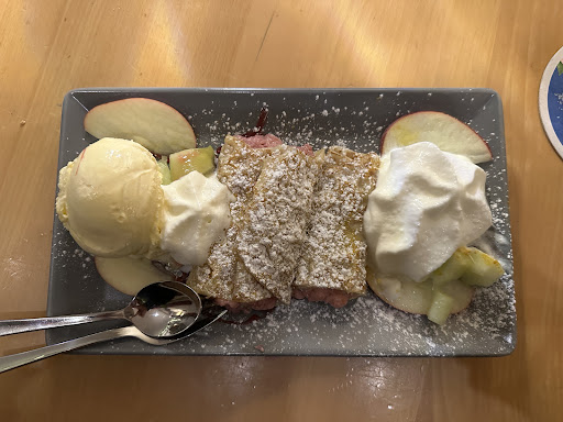 Die Spezi kam als erstes. Und war leer bevor der Tee (kam als zweites) serviert wurde. Spezi wurde direkt nachbestellt. Dann kamen die Eier.. Spiegeleier waren bestellt. Rühreier mit dem labberigsten Speck überhaupt kamen auf den Tisch. Fühlte mich echt etwas verars... Brot Marmelade Butter und Honig. Dann o-Saft. Mein Saft war genauso schnell leer wie die Spezi. Und dann war sie weg. Also die Bedienung. Nach 10 Minuten warten habe ich sie dann gesucht und im Plausch mit dem Koch gefunden. Von meiner zweiten Spezi und dem Aufschnitt weit und breit nichts zu sehen. Diese kamen dann nochmal 10 Minuten später und ich wurde nur ungläubig angeblinzelt als ich meine Eindrücke schilderte und die Rechnung wollte. Da Ihr das einzige Frühstücksangebot in der Nähe habt gebe ich euch seit 6 Jahren immer wieder mal eine Chance. Dieses war leider nur einer von vielen Reinfällen die ich dort erlebt habe. Meine Erwartungen waren demnach nicht besonders hoch, wurden aber dennoch enttäuscht. Das war vor...