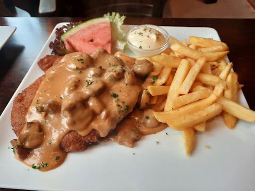 Read moreZo kan het dus ook, we waren er toevallig een keer langsgekomen. Nu dus op goed geluk er naartoe. We liepen naar binnen, erg gezellig, cafe vol.en restaurant paar mensen. Een dame zag ons en vroeg wat we wilden ( in het Nederlands ). We mochten buiten een tafeltje uitzoeken ( terras plusminus 20 klanten ). Na te gaan zitten vrijwel direct bediening. Bestelling vlot en vriendelijk. Mandje vers warm brood met kruidenboter en soort yoghurt/komkommer saus, erg lekker. Daarna Hamburger Schnackert en Schnitzel met Pepersaus. 1x fles water met bubbels en 2x 0,25 witte huiswijn droog ( erg lekker ). Afrekenen inclusief tip €55. Dat is voor deze kwaliteit, vriendelijkheid en snelheid ronduit goedkoop. Daar komen wij nog een keer dat is...