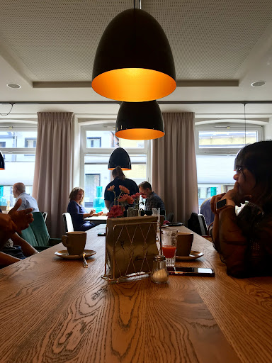 Es gibt verschiedene Brötchen, die alle sehr lecker waren und ich glaube auch selbstgemacht. Es gibt 5 oder 6 verschiedene Frühstücksangebote. Das Avocadofrühstück 7,60€ (Brot mit Avocado wahlweise mit Rührei, dann 2€ extra) ist uns aufgefallen, aber wir haben uns letztlich für das Verwöhnfrühstück entschieden, 14,50€ pP. Enthalten Käse, Wurstaufschnitt, Konfitüre, Lachs, Obstsalat, 2 Heißgetränke, Rührei und ein frisch gepresster O-Saft. Wir haben zwei mal das Frühstück bekommen - 5 Brötchen, was ich komisch fand, weil wir zwei Frühstück bestellt haben die jeweils ja Brötchen haben. Der Aufschnitt war leider nicht so meins, es gab Lachsschinken, Mett und Salami. Leider nichts ohne Schwein. Neben der Konfitüre gab es noch eine kleine Schale Fleischsalat - für zwei Personen viel zu wenig, hat gerade mal für ein halbes Brötchen gereicht. Sehr schade und definitiv nicht in Ordnung wenn man zwei mal das Frühstücksangebot bestellt. Gleiches galt beim Rührei. Es gab ein kleines Schüsselchen, viel zu wenig für zwei Leute. Sonst habe ich so eine Menge immer für mich alleine bekommen. Auch schade, vor allem, weil der Nachbartisch - der das gleiche bekommen hat - eine doppelt so große Menge erhalten hat. Und auch das Glas mit Obstsalat war bei uns leider viel weniger gefüllt als am Nachbartisch - dort war das Glas weit über den Rand mit Obst voll.