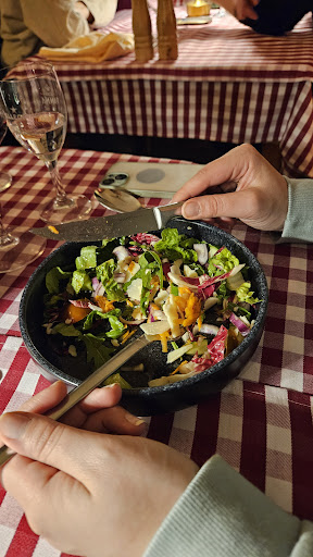After entering this place without even high expectations, our experience did not even fulfill the descriptions stated within the online ratings. The two dishes (see pics) looked relatively good on the first glance, but the pasta was of low quality, definitely not home-made. The extra added flavor, besides what you can buy in simple grocery stores, was unfortunately missing. The "Pfifferlinge" mushrooms were partially replaced by the obvious "champignons" from the supermarket, expensive cheese was left out... Yet, their prices are as high as they would use something special in their kitchen. This place is, in my opinion, especially compared to other restaurants, rather overrated. It is far from being able to be this expensive (charging 60 euros in our case with two glasses of wine!!!). Hence, our rating. (Wines are...