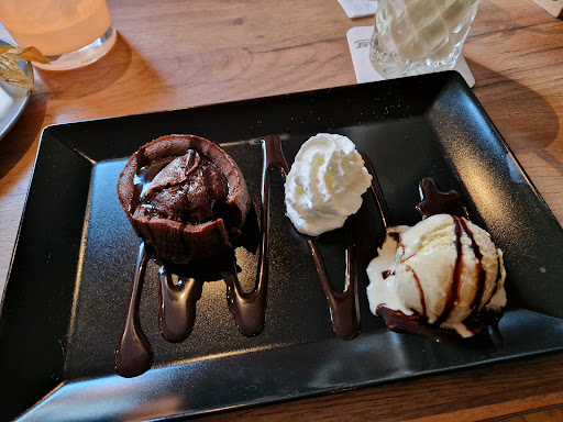 Read moreÜber das Essen lässt sich im Grunde nichts sagen, außer dass es geschmeckt hat. Die Portionen könnten größer sein, wie ich finde. Preislich ist es ganz OK gewesen. Was mich aber wirklich genervt hat, und hier auch zu einem entsprechenden Abzug von Sternen führt, ist dass der Service extrem langsam war, überwiegend freundlich aber langsam. Die erste Runde Getränke hat fast 15 Minuten gedauert und auf unser Essen mussten wir 1:15h warten. Und der Laden war wirklich nicht extrem voll oder so. Das selbe Spiel hatten wir dann mit den Desserts. Auch hier dauerte das ganze recht lang nach fast 25 Minuten fragte ich dann bei der Kellnerin wie es denn um unser Essen bestellt sei. Welches sie damit entgegnete dass sie in der Küche nachfragen müsse. OK. Kurz darauf kam sie wieder und sagte dass die Desserts noch nicht einmal angefangen seien. Dies ist zwar ehrlich aber für uns war es extrem nervig. Insgesamt muss ich sagen dass ich auf Grund des schlechten Services dieses Abends nicht noch mal wieder dort essen gehen werde. Tut mir leid da gibt es besser...