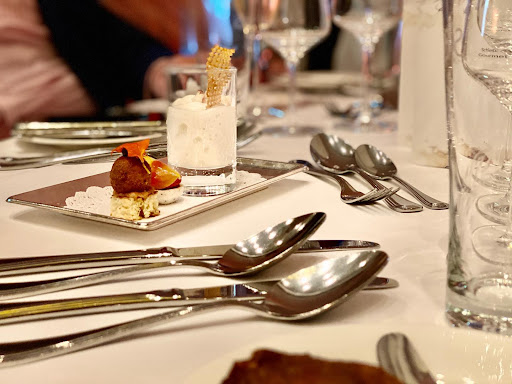 The additionally ordered components of animal origin were served separately as a side dish. In my case at least, the combinations created through my own choice did not result in a harmonious whole (neither for the starter nor the main course). As the results were random and, in my opinion, completely dissonant dishes, the odds to serve matching wines seem to be very...