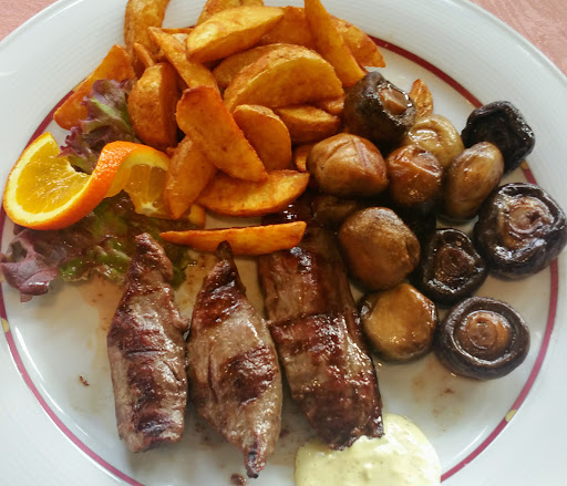 Read moreWir haben kurzfristig einen tisch reserviert(eine stunde vorher) aber trotzdem noch einen bekommen, obwohl der laden fast voll war. vor ort sind wir direkt in empfang genommen und freundlich begrüßt worden. das lokal ist schön hell und im typischen stil von kroatisch angehauchten steakhäusern, sehr gemütlich-die salatbar ist groß, es gibt reichlich auswahl, von normalem salat bis kartoffelsalat, alles was wir probiert haben war sehr lecker.lediglich die salatschüsseln könnten einmal erneuert oder besser getrocknet werden. an den getränken lässt sich auch nicht bemängeln, egal ob softdrinks, weine, kaffee oder biere.erfreulich ist dass man hier mal eine auswahl hat zwischen trockenen und lieblichen weinen, das gibts ja leider nicht überall. die auswahl an gerichten ist wirklich recht groß, jeder wird hier etwas finden. Zu essen hatten wir einmal überbackene filetmedaillions mit kroketten und pilzen, die pilze waren (und das sage ich als jemand mit abneigung zu pilzen) echt hervorragend, top konsistenz, keine dosenpilze sondern frische und perfekt gewürzt. die kroketten waren auch gut, das fleisch vom garpunkt realtiv gut getroffen, nur etwas übersalzt. zum anderen gab es ein 300 g rumpsteak mit pommes und kräuterbutter, die pommes waren qualitativ gut, die butter ebenso, das fleisch auf den punkt gebraten und von guter qualität. auch die wartezeit hilet sich in grenzen, trotz komplett gefülltem lokal nur ca 30 minuten, was absolut in ordnung ist zur hochmittagszeit. die kellner waren freundlich und bemüht, immer unterwegs und schnell am tisch wenn getränke leer waren, lediglich der chefkeller könnte vielleicht mal was lächeln =) ansonsten war der tip von privat dem wir gefolgt sind wirklich gut und wir hatten einen schönen nachmittag mit einem richtig leckeren essen. die preise waren leicht überm schnitt aber immer noch absolut im rahmen, das zahlt man gerne wenn man gutes essen bekommt. insgesamt ein solides restaurant wo nahezu jeder mal gut essen gehen kann,gehen wir also bestimmt...