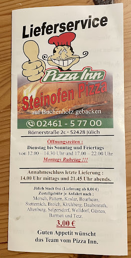 Read moreWir haben heute den Lieferservice in Anspruch genommen. Dauer der Lieferung 45Minuten. Die Pizza war leider nur gering warm, das Aroma des Buchenholz/Steinofens fehlt, sehr dünner Boden und entsprach leider nicht der Pizza wie wir es vom Vorgänger gewohnt waren, da ist noch reichlich Luft nach oben. Der gelieferte Salat „Insalata Inn“ war zwar gut bestückt jedoch die Salatsauce (Hausmarke/italienische Sauce)nicht zu empfehlen geschmacklos/fade, dies entspricht nicht dem was wir vorher gewohnt waren. Die sogenannte „Kräuterbutter“ bestand nur aus Margarine, etwas Salz und Pfeffer sowie einem Hauch Knoblauch. Die mitgelieferten Pizzabrötchen waren warm und ok. Mein Fazit: Hier ist sehr viel Luft nach oben, es besteht großer Bedarf an Verbesserung um das gewohnte Niveau des Vorgängers zu erreichen, ich werde hier nicht mehr bestellen - nicht...