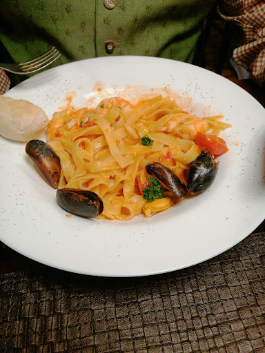 Nun zum Restaurant und dem Essen: Die männliche Bedienung war sehr freundlich und zuvorkommend. Auch bekamen wir schnell unser Essen, welches gut und auch heiß war. Ich hatte mir aus der Tageskarte Spaghetti mit Gampas und Lachs ausgesucht, mein Mann Tagliatelle mit Gampas und Muscheln. Das Essen war gut und die Spaghetti, sowie der Lachs und die Gampas waren auf dem Punkt gegart - die Tagliatelle meine Mannes mit den Muscheln und den Gampas ebenfalls. Allerdings hatte unser Essen einen Wermutstropfen, denn es war stark mit gekörnter Gemüsebrühe überwürzt und daher konnte man weder die Spaghetti, noch das normalerweise fruchtige der frischen Tomatensoße noch die Gampas und Lachs herausschmecken, sondern man schmeckte nur den Geschmack der Gemüsebrühe. Das empfanden wir beide als sehr schade, weil wir uns so sehr auf das italienische Essen freuten. Leider war der Geschmack der Gemüsebrühe übermächtig und mache sich über die Geschmacksnerven breit. Schade, schade schade!