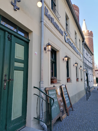 Delicious and filling meal. My choice selection was a house specialty item: Pork medallions with mushrooms in sauce accompanied by stuffed potatoes and fresh tossed salad. Followed by a Apple strudel with whipped cream at my request rather than vanilla ice cream. See photo. Appetizer was the pumpkin soup with fresh bread absolutely marvelous. A delightful fine dining discovery in Juterbog Germany. Excellent service for the group I was with. Enjoy the photos. Note: Menu available in...