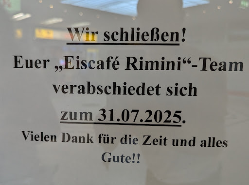 Read moreNie wieder!!! Wir wollten an einem warmen Freitagnachmittag ein paar Einkäufe im Burgaupark erledigen, als wir am Eiscafe Rimini vorbeikamen, hielten wir es für eine gute Idee, uns einen Eisbecher zu gönnen. Im Eiscafe war nicht viel los, lediglich an zwei Tischen saßen jeweils zwei Gäste. Wir schlenderten also auf einen freien Tisch zu, hatten diesen noch nicht erreicht, als wir durch einen Aufschrei der Kellnerin aufgehalten wurden. Ob wir das Schild am Eingang nicht gelesen hätten, wir hätten dort zu warten bis uns ein Sitzplatz zugeteilt wird. Die Mitarbeiterin am Tresen warf uns vernichtende Blicke zu. Wir hätten eigentlich direkt wieder gehen sollen, waren jedoch so perplex in dem Moment, sowas hatten wir noch nie erlebt. Man könnte das einsehen beim Besuch in einem gut besuchtem Restaurant, wenn einen der freundliche Kellner bei der Suche nach einem geeigneten Sitzplatz behilflich ist, aber nicht in einem fast leeren Eiscafe in einem Einkaufspark mit Blechtischen und Kunststoffstühlen. Die weitere Kommunikation mit der Kellnerin verlief frostig, bei Änderungswünschen am Eisbecher (eine Kugel Eis weniger) war man völlig unflexibel. Um 17:00 Uhr, wir waren inzwischen die einzigen Gäste, kam noch eine Frau mit zwei Kindern, die wurde empfangen mit den Worten: ausnahmsweise, es müsse jetzt aber schnell gehen, schließlich schließe man ja um 18:00 Uhr. Wir haben und die ganze Zeit im Eiscafe richtig unwohl gefühlt und waren froh, als wir dieses dann verlassen hatten. Wir werden dieses Eiscafe nie wieder besuchen, irgendwie ist man hier noch nicht in der heutigen...