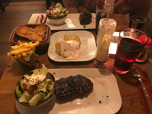 Read moreIch denke mal, wenn man auf dumme Laufkundschaft wert legt, kann man dieses Steak-House empfehlen. Zum einmaligen Geld verschwenden, bzw. um sich mit billig Zutaten was vorgaukeln zu lassen. Nun gut, wir haben es dennoch versucht da es ein Montag war und die anderen Restaurants entweder übervoll oder zu waren. Meine Befürchtung als wir eine halbe Stunde vorher an dem besagten Edeka Steakhouse ( Gut & Günstig, Chef hatte noch ne leere Eispackung in der Hand) Restaurant vorbei gingen und ich es vermied mit meinen Freunden einzukehren ( Bewertund hier und kein Mensch saß drin ) haben sich doch bewahrheitet. Wir haben bestellt: 2 x NY Burger und 2 x Rosa gebratene Filetstreifen mit Steinpilzen plus Soße, selbstgemachte Nudeln und Bier. Das Gute ist, Bier aus dem Fass lässt sich schwer panschen aber das Essen. Jetzt kommts: NY- Burger mit nem Fladenbrot, dazu grenzwertiges Rindfleisch ( trocken ) Remouladen Soße was bei Nordsee zum Seelachs angeboten wird und die Krönung Rucola frittiert, Schmelzkäsescheiben ( Scheibletten ) als Cheddar draufzulegen und das ganze für 12,50€ zu verkaufen. Ok, war ja nicht so schlimm als unerfahrener Gastronom. Aber rosa Rinderfiletstreifen ( Gesamtzahl 4 a. 20g ) die grau waren und zäh wie Hirschleder, dazu Nudeln die nicht selbstgemacht waren , ( schmeckt man, sieht man, alle gleiche dicke und Länge ) dazu die Steinpilze mit Soße die nach dem ersten Bissen sofort nach Champions ( Dose ) geschmeckt haben, und es auch waren. Eine Zumutung wirklich und eine Empfehlung an niemanden. Gut, die Mieten sind sehr hoch in Jena aber ein Restaurant zu führen um mit billig Zeug Geld zu verdienen ist der falsche Weg. Qualität zählt, Gäste nicht offensichtlich betrügen, so verdient man Geld. Ansonsten ist bald Schluss. Und der Porsche wird abgeholt von der Leasingfirma. Allzeit...