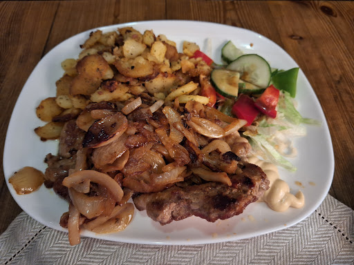 Was nicht geht - daher der eine Stern: -1,5 Stunden oder länger aufs Essen zu warten; -anderes Essen zu bekommen, als das was bestellt wurde; -so lange aufs Essen zu warten, dass es inzwischen dunkel wurde und man bei der schwachen Beleuchtung draußen nichts mehr sieht; -verbrannte Bratkartoffeln, zu Tode frittierte Schnitzel, viel zuviel Salz und Dinge durcheinanderzumischen, die da nicht hingehören, z.B. Pilze vom einen Gericht unter das Rührei des anderen zu mischen. -Bier mit zu wenig Kohlensäure vom Fass zu zapfen -Toiletten in einem desolaten und keimigen Zustand vorzufinden (ihr öffnet um 18 Uhr, um 20 Uhr sah es bereits aus wie Sau, sowohl bei den Männern als auch bei den Frauen!)