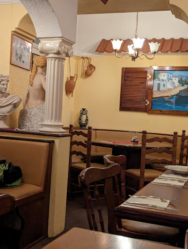 Ich kann mich nur einigen der niedrigen Bewertungen neuerer Zeit anschließen. Wir waren heute zum ersten Mal dort und werden sicherlich nicht noch ein Mal kommen. Nachdem wir an den Tisch gesetzt wurden passierte die nächsten paar Minuten nichts. Dann fiel einem der Kellner auf dass wir noch keine Karten bekommen hatten. Nachdem dies behoben war, bestellten wir Getränke. Eine Minute später kam eine andere Bedienung und fragte, ob wir schon bestellt hätten. Dieselbe Frage wurde uns eine weitere Minute von einer anderen Bedienung noch mal gestellt. Absprache hier also gleich null. Wir bestellten zwei Vorspeisen, von der eine recht zügig kam. Dazu wurde uns Brot gereicht, dabei handelte es sich um pappiges Aufbackbaguette welches auch gut vom Vortag hätte sein können. Gut, (Ironie an) dafür war der Ouzo warm (Ironie aus). Nächstes kleines Ding war das Besteck dass uns gebracht wurde, es waren vier Messer und eine Gabel, eine absolute Kleinigkeit und an sich nicht weiter erwähnenswert, es fügte sich aber passend in den bisherigen Verlauf des Besuches ein. Als die Hauptspeisen gebracht wurden (eine Vorspeise fehlte nach wie vor) kamen wir uns jedoch wirklich ein wenig fehl am Platz vor. Wir hatten jeweils eine andere Pfanne mit Rindfleisch bestellt. Die beiden Gerichte sahen optisch exakt gleich aus, deswegen mussten wir fragen welches Gericht welches ist, zwei Kellner haben das dann in gemeinschaftlicher Arbeit für uns in Erfahrung bringen können. Ein Indiz für das Aussehen der Gerichte. Beide sollten eine, gemäß Karte, Weinsauce haben, die jedoch viel mehr einer fettigen Tomatensauce glich, bei der sich am Boden der Pfanne der dickere Teil der Sauce und obenauf der fettig, ölige befand. Das Fleisch glich zerkochten Gulasch und war geschmacklich so Charakterstark wie ein nicht aufgepumpter Volleyball. Ich hatte als Beilage Knoblauch-Bratkartoffeln bestellt, welche aus zerkochten Kartoffeln bestanden die in viel zu viel Öl (welches sich auf dem Teller verteilte) kurz in der Pfanne geschwenkt wurden waren und der Bezeichnung Bratkartoffeln genauso glichen, als würde man Stephen Hawking (einen Mann den ich absolut verehre) als Türsteher bezeichnen. Ich habe mein Fleisch aufgegessen, da ich erstens riesigen Hunger hatte und zweitens war es eh nicht viel. Den Rest ließ ich stehen, genau wie meine Begleitung, deren Auberginen in ihrer Pfanne den Zustand von zerkocht schätzungsweise schon zwei Stunden vorher überschritten hatten. Als eine andere Kellnerin fragte, was los sei, schilderten wir unsere Beanstandungen, das Gespräch konnte jedoch nicht zu Ende geführt werden, da sie von einem anderen Gast abgelenkt wurde, der zahlen wollte und mit ihm mitgegangen ist. Unsere Teller wurden abgeräumt und ein anderer Kellner kam und blaffte uns regelrecht an, was mit dem Essen nicht gestimmt haben soll. Wir teilten es ihm mit und er entgegnete wir hätten aufgegessen. Was einfach nicht stimmt. Wir haben lediglich das bisschen Fleisch gegessen, welches in den Pfannen war. Er sagte er beende jetzt die Diskussion und räumte aufgebracht den restlichen Tisch ab. Wir teilten ihm mit dass wir die Rechnung haben wollten, was er auch verstanden hatte aber bekommen haben wir sie dann erst von einer anderen Kellerin, nachdem wir noch mal nachgefragt haben. Diese bot uns einen Gutschein an, was wir ablehnten. Auf der Rechnung stand dann eine Vorspeise, die wir nicht bestellt haben, das wurde jedoch ohne Beanstandungen gestrichen. Der Gutschein über fünf Euro für den nächsten Besuch, welchen es nicht geben wird, haben wir abgelehnt. Fazit: Null Absprache/Aufteilung zwischen den Bedienungen. Schlechtes Essen. Einzig die, und für die die sich gefragt haben wann es kommt, zweite Vorspeise (gegrillte Peperoni), welche uns nachdem wir nachgefragt hatten kurz nach den Hauptspeisen gebracht wurden, waren wirklich gut. Wir gehen regelmäßig, mehrfach im Monat, zu unterschiedlichen Restaurants und bevorzugen die griechische Küche. So etwas schlechtes wie im Dionysos haben wir noch nicht erlebt. Dieser Grieche kann von uns nicht...