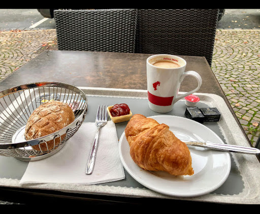 Der einzige Grund das dieser Bäcker noch nicht dicht gemacht hat ist seine Lage! Hoffentlich bekommt er bald mal etwas Konkurrenz, mehr als einen Kaffee werde ich mir dort...