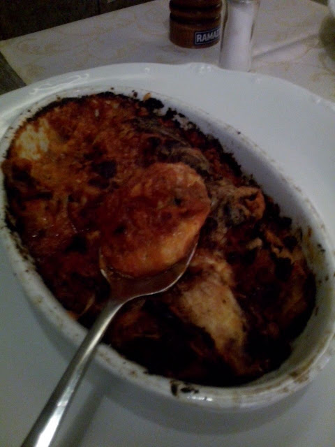 Das Ambiente war ansprechend bis kitschig und teilweise zerschlissen. Die notdürftig geklebte Wandlampe habe ich noch fotografiert, die zerschlissenen Stühle gehören frisch bezogen bzw. wegen Unbequemlichkeit (zu eng)...
