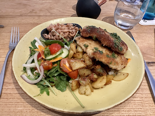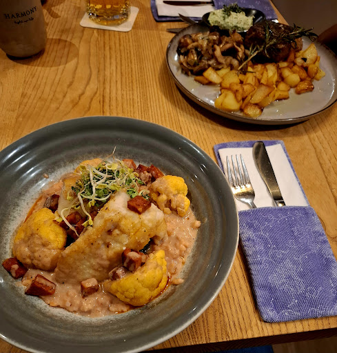 Read moreInsgesamt gemütliches Ambiente, nicht zu laut. Freundlicher Service. Recht lange Wartezeit, um Bestellungen aufzunehmen. Qualität der Produkte gut. Speisekarte übersichtlich, aber wechselnd - ich hatte halt Pech, wenig nach meinem Geschmack/ Unverträglichkeiten. Am besten vorher checken! Vegetarier waren alle zufrieden. Für mich waren die Proportionen von Hauptzutat und Beilagen teilweise nicht stimmig (z.B. Erdbeeren mit Vanillesoße war eigentlich Vanillesoße mit ein paar Erdbeeren, übersichtlicher Spargel, viele Kartoffeln). Preis-Leistung dafür gut. Man muss sich auch darauf einstellen, dass Classiker nicht zwingend wie gewohnt serviert werden. Viele mögen das gerade so, moderne, kreative Küche - als Autistin habe ich das nicht so gefeiert (Scholle Finkenwerder Art wurde quasi geschichtet in einem tiefen Teller serviert).