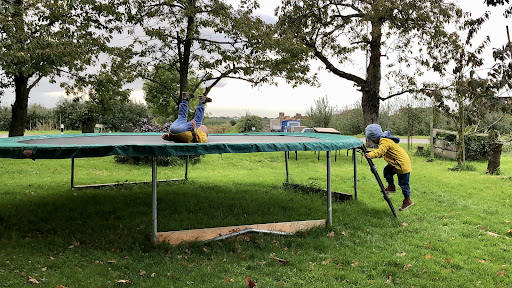 Es gibt Kaffee und Kuchen und auch für die etwaig vorhandenen Kinder ist bspw. durch ein großes Trampolin und einer Schaukel gesorgt.
