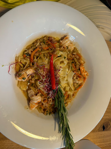 Das Essen war sensationell gut! Wirklich selten so derart hervorragendes Essen genießen dürfen. Wir hatten Vorspeise (Suppen), Zwischengang (Hummer), Hauptspeise (Entrecôte & Lamm) und Dessert... geschmacklich wirklich außergewöhnlich gut. Auch die Anrichteweise war sehr ansprechend. In allen Gängen würden wir 10 Sterne vergeben, wenn dies möglich wäre. Am Abreisetag gab es noch Fischbrötchen (Hummer & Matjes) am To-go-Schalter. Ebenfalls sehr lecker und geschmacklich nicht vergleichbar mit den Standard-Fischbrötchen die man sonst so kennt. Wenn man also bedenkt, was man hier an Qualität und Geschmack geboten bekommt, sind die Preise mehr als gerechtfertigt und vollkommen in Ordnung. Der Service war auch super, alle Mitarbeiter waren freundlich und zuvorkommend.