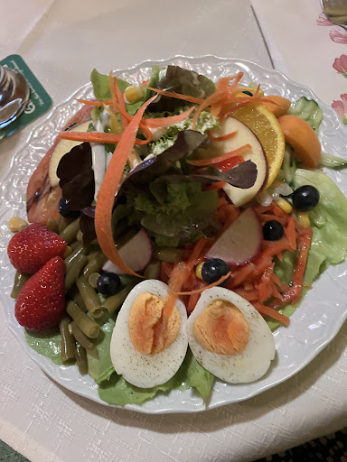 Read moreDas war leider nix :-( Die Gaststätte ist lieblos und sehr alt eingerichtet und dekoriert. Darüber KANN man hinwegsehen, wenn alles andere passen würde. Allerdings riecht es schon beim Betreten sehr muffig. Der Nebenraum war Ultra kalt und dekoriert mit unzähligen Hexen und alten verstaubten Bögen und Ringe… 🫣 Service kam ohne Getränkekarte - wurde dann von uns eigenständig besorgt. Auf der Speisekarte fehlt es an gesunden Alternativen. Und der bestellte Salat war mehr als „abenteuerlich“ Eine Sehr fragwürdige Mischung (siehe Bildbeschreibung) und darunter ein paniertes !!!! völlig von Salatsoße ertränktes Schnitzel. Wirklich nicht gut. Und dann wart der Service nie mehr gesehen. Keine neuen Getränke, kein Geschirr abräumen und keine Rechnung. An diesem Abend waren in der Spitze maximal 5 weitere Tische zu...