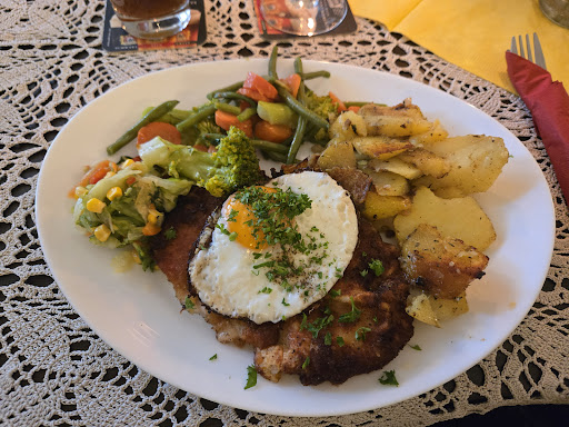 Sehr netter und gut gelaunter Service! leider wurden wir nicht (wie bei der Reservierung abgesprochen ) im urigen Gastraum sondern im Saal platziert der Saal ist aufgrund der derzeitigen Situation nicht einsatzbereit für die Bewirtung von Gästen, leider hat die Atmosphäre und das Ambiente daher überhaupt nicht gestimmt: Gerümpel in den Ecken, ungenutztes Mobiliar („Abstellraum Charakter), dreckige Tischdecke mit riesigen Flecken, wackelnde Tische, dreckige Gläser, keine Hintergrundmusik leider haben wir uns sehr unwohl gefühlt und wir hatten das Gefühl in einem kalten Lagerraum zu sitzen das Essen ist in Ordnung, allerdings viel zu teuer für simple (und leckere) Hausmannskost (21€ für eine Gänsekeule mit Klößen) - auch wenn das Essen lecker war, stimmt leider das Preis-Leistungsverhältnis an dieser Stelle gar nicht trotz vorheriger telefonische Absprache gab es kein vegetarisches Gericht im Angebot trotz des wirklich freundlichen Services, haben wir uns so unwohl gefühlt, dass wir leider nicht wieder kommen...