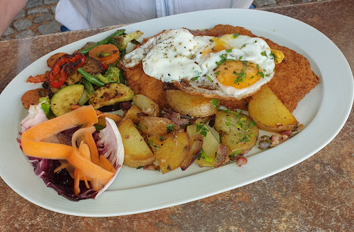 Wunderbarers Ambiete im Schloßinnehof.Bei schönem Wetter läd das zum Träumen ein. Und man erwartet hier schon förmlich etwas Besonderes und wird dann bitter enttäuscht. Schon der Blick in die Karte verrät, dass man hier eher im Standard Steakhouse ist. die Preise verraten schon, dass man hier kein besonderes Fleisch erwarten kann. Und so ist es dann auch. Supermarktqualität, dafür gehe ich nicht in ein Restaurant, das mache ich zu Hause selbst und besser. Kräuterbutter aus dem Kühlregal, Pommes und Kroketten aus dem Tiefkühler. Auf jedem Teller der 80er Jahre obligatorische gemischte Salat mit Fertigdressing. Der Serive ist zwar nett, aber sehr langsam. 2 Dinge wurden anders serviert als bestellt. Sogar der Aperol-Spritz spreckte gestreckt. Wir hatten hier keinen...