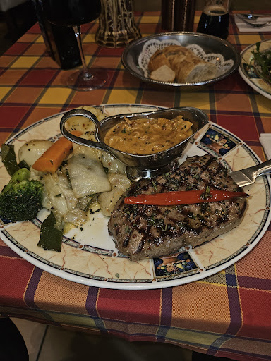 The restaurant itself is very clean and beautiful with some nice, classical paintings on the walls. The food was very delicious and decently priced. My compliments to the chef! But the service on the other hand... the waiter was very rude. When it came time to take our order I tried ordering a drink by telling him the corresponding number on the menu. He said, "Tell me what it is you want. I don't know the number", so I told him. Then I tried ordering the food by telling him the name of the dish (like he requested he I do with the drink) but he interrupted me and said he just wanted the number. When he brought us our drinks and silverware we said thank you and he said "Bitte!" in a short manner and punctuated his sentence by half-slamming the cup on the table. When the people sitting next to us tried paying for their order they handed the waiter a 50€. He said, "You don't have anything smaller?!" to which the man said no. Then the waiter stomped away to make change and brought back more small change than what seemed necessary. While we were eating, the waiter was on phone multiple times talking to different people. We could overhear him a bit talking on the phone and he was even rude to those peole too! He said something on the phone and when he had to repeat himself (I'm assuming because the person couldn't hear/understand him and said "what?") he said it again but this time very loudly and slowly like an impatient native-speaker talking to a foreigner who doesn't understand the language. "BIT-TE-SCHÖN! VER-STAND-EN?" While the restaurant was nice and the food was delicious, this waiter makes me never want to come back as long as he is...