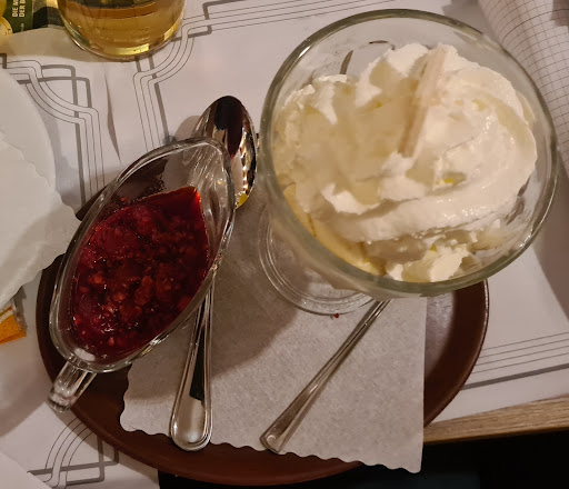 Read moreSuppen, Dessert und das Fleisch absolut lecker und 5 Sterne wert. Die Sättigungsbeilagen aber leider enttäuschend. Rosmarinkartoffeln -vorgegarte Kartoffeln in getrocknetem Rosmarin gewälzt, Spätzle vermutlich auch warm gemacht, etwas wässrig und fad, Gemüse nur gedämpft und noch halbroh und ohne jegliche Gewürze, leider total fad. Zudem noch total einfallsloses Gemüse bestehend aus dem klassischen Kaisergemüse und wenn man Glück hat noch bisschen Lauch und roher Aubergine dabei.