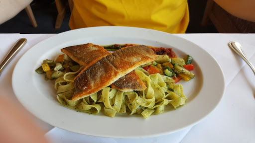 Ich bin Vegetarier. Bin schon das 3te Mal in diesem Lokal weil ich ihm immer wieder eine Chance geben möchte. Das Ambiente ist wirklich nett. War sowohl schon mit Familie wie auch mit Freunden dort. Meine Erfahrung ist jedoch leider immer wieder die Gleiche. Für mich als Vegetarier haben sie 1 Gericht auf der Karte. Flexibilität das Gericht etwas abzuändern, z.:B . Gemüse dazu oder Nudeln verändern - Keine Chance. Nur so möglich wie auf der Karte. Dieses Mal hatte ich mir die Bandnudeln mit Trüffel bestellt. Die Bedienung wusste also dass ein Gast Vegetarier ist. Als Gruß des Hauses kam Lachs. Ich habe nochmals gesagt dass ich das nicht esse. Kommentar: ja dann bekommen sie nichts. Das hätte man davor wissen müssen. Zwischen unserer Bestellung und dem Gruß des Hauses vergingen ca. 10 Minuten. Da hätte man auch bestimmt was anderes kurz anrichten können. Also ging ich hier leer aus. Als mein Essen kam waren die Nudeln so trocken, dass selbst meine Begleitungen gesagt haben, dass es trocken aussieht. Es war auch kaum runter zu bringen, worauf ich nach einer Soße dazu gefragt habe. Die Bedienung machte sich auf zur Küche und meinte dann: es kommt gleich eine Soße. Und ja sie kam. Eine Bratensoße. Ich hab die Bedienung gefragt ob das ihr ernst ist. Ja, was anderes haben sie nicht. Es war also nicht möglich einfach etwas Buttersoße oder eine Rahmsoße zu bringen. Somit hab ich nach der Hälfte des Essens aufgegeben. Den Nachtisch haben wir dann ausgelassen. Meine Tischbegleitungen hatten Fleisch, das scheinbar ganz gut war. Freut mich für sie dass es ihnen geschmeckt hat. Ich kann dieses Lokal für Vegetarier leider nicht empfehlen. Auch der Service der Bedienungen war mittelmäßig. es wurden die Teller und Gläser z.B. über den Nachbarn vorne herum gereicht an seinem Gesicht vorbei. War alles etwas lieblos serviert. Die zwei jungen Frauen waren bemüht und freundlich. Ich wünsche Ihnen, daß Sie das Wort Dienstleistung noch etwas besser verstehen lernen. "Dienst am Kunden". Danke...