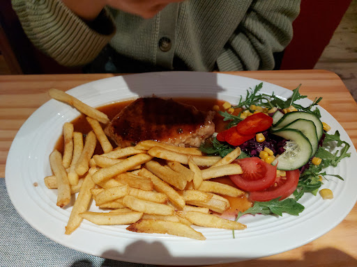 Read moreWie man nach über 30 Jahren Ankopplung an den Westen noch immer in einer Blase von Langsamkeit, Inkompetenz und Desinteresse vor sich hinwerkeln kann, ist ein Rätsel. Rosin, Rach & Co wären schreiend rausgerannt. Warum ich das nicht machte, liegt wohl an meiner Tier- und Menschenliebe. Ich war ca 1.5 Stunden an diesem Ort, den größten Teil dieser Zeit verbrachte ich mit Warten. Die Bude - mehr ist es nicht - war zwar besucht, der große Andrang war aber vorbei. Der Bedienstete, vielleicht war es auch der Chef, bewegte sich planlos und möglicherweise alkoholisiert in langsamen Bewegungen, ungeschickt und unkoordiniert zwischen Küche, Ausschank und Gästen hin und her. Unprofessionell, Unaufmerksam und fast tollpatschig. Ungelernte sollten wirklich aufhören, sich und anderen vorzugaukeln, dass man mal eben so und auf Dauer erfolgreich einen gastronomischen Betrieb am Laufen halten kann. Corona hin, Corona her... Auch die Tatsache, dass die Tür zu den Aborten, aus denen zudem schlechte Musik schallte, ständig offen sein musste und die nassen Feudel auf einer Mauer im Rücken der Gäste getrocknet werden, ist eine weitere Frage, die sich mit ein wenig Kombinatorik aus oben Geschildertem beantworten lässt. Einfachste Gerichte (das Essen ist der unteren Mittelklasse zuzuordnen), ohne jeden Schnörkel...nicht mal ein Kringel war daran zu erkennen, doch es dauerte Ewigkeiten, bis diese - fantasielos angerichtet - an den Tisch kamen. Gleiches mit den Getränken. Dieses Vorgehen war an allen Tischen zu beobachten. Den Betreibern bleibt aber natürlich zu wünschen, dass der Betrieb irgendwie überlebt, denn in dieser Gegend sind Arbeitsplätze rar. Leute, holt Euch Hilfe! Ein Fachbuch...oder Aushilfen, die sich schneller bewegen als Ihr selbst und sich auch mal umschauen. Möglicherweise erkennen oder dieses Wissen schon mitbringen, dass es auch in der Gastronomie Standardprozesse gibt, die überall auf der Welt...