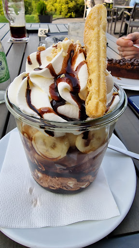 Heute waren wir wieder einmal zum Kaffeetrinken hier. Ein Chaos ohne Ende. Es war gut besucht aber nicht voll. Tische waren nicht abgeräumt und neue Besucher saßen schon dran. Es gab nur eine Bedienung die Bestellungen aufnehmen konnte. Die erstbestellung von Kaffee ging schnell. Die Bedienung wollte gleich wieder kommen für die Kuchen und Eis Bestellung. Wer nicht kam, war sie. Den netten Kollegen der den Kaffee brachte, sagten wir, dass wir noch bestellen möchten. Wer kam nicht. 😉 10 Minuten sahen wir keinen. Wir winkten dann höflich die Kollegin her. Sie kam.... Kurz vorher wollte noch der Nachbar Tisch bezahlen. Ok. Genehmigt. Dann der Tisch daneben auch noch. Ok. Und dann... Wurden wir wieder vergessen. 🤦♂️ Ein freundliches Hallo und winken, brachte die Kollegin wieder in die richtige Bahn zu uns. Kuchen und Eis kamen zeitnah. Es war draußen auch nicht mehr viel los. Es ging zum bezahlen....man sah keinen mehr. Auch keine erneute Nachfrage ob alles ok ist oder wir noch was haben möchten. Dann endlich. Kollegin wollte schon wieder rein gehen. Gerade so geschafft zu winken 🖐️ Sie kam. Ec Karten zahlung müssen drin gemacht werden. Kein Problem. Zack mit rein. Sie wollte gerade das ec Gerät starten und zack... Chefin oder Vorgesetzte in "weiß" kam. Mitten im Kunden Abschluss erklärte die Chefin ihr plötzlich was alles morgen zu machen ist und ob sie es weiß. 🤦♂️ Wie wäre es als Chefin einfach mal zu warten bis wir als Kunden fertig bedient wurden. Es wären keine 20 Sekunden mehr gewesen. Danach wurden wir dann endlich abgerechnet.