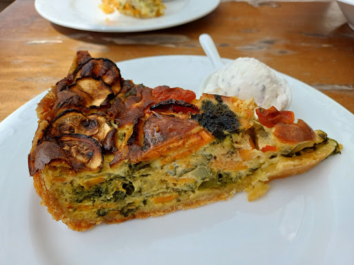 Auch unsere Hauptgerichte, die Pizza Vegetaria und die Gemüse-Quiche mit Salat, waren auf den Punkt zubereitet, frisch, lecker und mit viel Liebe serviert.