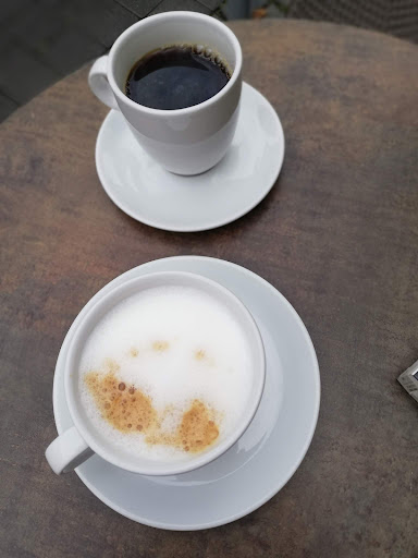 Himbeertorte mit einer "Tasse" Latte. Die Bedienung war völlig überfordert, weil alleine in der ganzen Bäckerei. Ich hätte mehr auf den Namen des Geschäfts achten soll... Brotbäckerei!! Der Verkauf von Brot und Brötchen ging der Servicekraft zügig von der Hand. Das Zuschneiden eines Tortenstück und Abfüllen eines koffeinhaltigen Getränks war dann doch etwas zeitraubend. Das Geschäft war gut gefüllt. Nahezu alle Tische waren belegt. Da self-Service, suchte ich mir für mein Törtchen das Besteck selber zusammen. Es endete mit einer großen Gabel für Kuchen und Kaffee. Löffel und Kuchengabel waren "aus", da die Bedienung noch keine Zeit gefunden hatte benutztes Besteck und Geschirr zu spülen. Nun gut! Dafür war die Himbeertorte sehr ansehnlich und auch schmackhaft. Die Himbeerglasur war zwar etwas zäh (wahrscheinlich zu stark geliert) aber dafür voller Geschmack. Die Latte in der Tasse ist eigentlich ein NoGo, aber alle Becher und Gläser wartet auf ihre Spülung...Da der Laden gut gefüllt war und sich vor allem Einheimische an den Tischen befanden, war der Unterhaltungswert für mich groß....und das schon um...