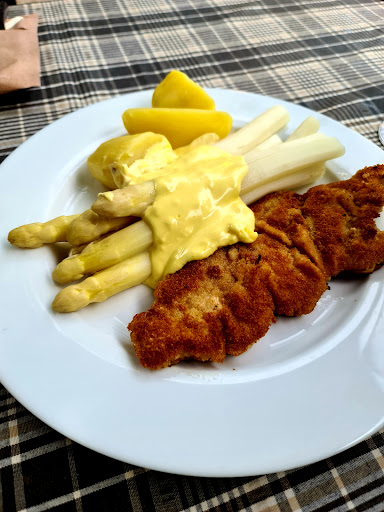 Read moreAlso vorab das Gute: das Lokal und die Lage ist sehr schön und man sitzt sehr gemütlich mitten im Grün und mit Blick auf den Rhein und das Personal ist sehr nett. Das wars dann aber auch schon, denn, sollte man Hunger haben, ist man hier falsch. Es schmeckt zwar, aber wir haben echt überlegt, ob wir nochmal das Gleiche bestellen. Davon haben uns dann aber die teuren Preise abgehalten. Ich empfinde es z.B. wirklich unverschämt, wenn man anstelle von Pommes lieber Bratkartoffeln möchte, dafür einen Aufpreis (1,80 €) zu verlangen bei einem Gerichtspreis von 16,80 € (!) Bei uns gehört das in jedem guten Restaurant zum ganz normalen Service und zwar ohne zusätzliche Kosten. Die Schnitzel waren kleine Kinderschnutzel, die jeweilige Soße war am Teller schnell vorbei gelaufen ( vielleicht 2 Eßlöffel) und dazu ne Handvoll Pommes oder (gegen Aufpreis) Bratkartoffeln. Trocken natürlich, denn wie gesagt, die Soße reichte nicht für die Beilage...und für Ketchup oder Majo wäre warscheinlich der nächste "Aufpreis " verlangt worden...wir haben es vorsichtshalber nicht nachgefragt. Jedenfalls haben wir uns letzlich als zusätzlichen Hungertöter für einen Erdbeerbecher als Nachtisch entschieden. Auwei....2 Kugeln Eis und 2 gehälftete Beeren und Fertigsahne (zumindest schmeckte sie so). Zum Schluss sind wir für 2 Schnitzelgerichte, 2 Apfelschorlen und den beiden Eis, 55 Euro ( 100 DM !! ) los geworden und hungrig ins Hotel zurück gegangen. Wir wissen alle, dass die Gastro schwere Zeiten hinter sich haben, aber so sollte man sich nicht präsentieren, um Geld in die Kasse zu bekommen. Ein hübsches Lokal, das auf Möchtegern Schickimicki macht. Schade eigentlich. Ach ja...wir kommen aus Süddeutschland und wenn man bei uns 55 Euro zu zweit hinlegt, dann ist man in einem seeehr guten Restaurant und geht satt und...