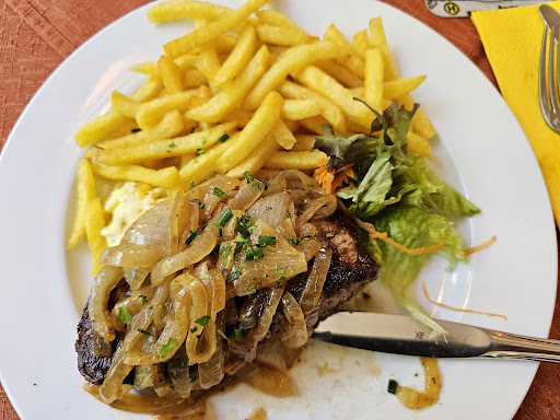 An unserem Nebentisch mit einer anderen, älteren Kellnerin, erlebten wir eine Situation, die auch unbeteiligt unschön war. Auf Grund von mangelnder Qualität einer Speise machte ein Gast die Servicekraft darauf aufmerksam, dass etwas nicht mit ihrem Essen stimme. Was wir dann mithören mussten, war an unprofessionallität nicht zu überbieten: die Kellnerin reagierte absolut unfreundlich, gar frech, und unterstellte dem Gast indirekt, dass die Beanstandung unmöglich sei, schließlich gäbe es sonst keine Beschwerden und Fehler wie diese, (Fleisch laut Gast nicht in Ordnung) könnten nicht passieren. Ich kann und möchte die Kritik des Gastes nicht beurteilen, was ich aber sehr wohl beurteilen kann, ist der Umgang mit der geäußerten Kritik. Dieser ging absolut nicht. Unangebrachte Äußerungen nach verlassen des Lokals durch die Servicekraft über die Gäste machten die Situation nicht besser. Ich bin froh, selbst nicht von der Kellnerin bedient wurden zu sein, die Situation war nämlich auch als unbeteiligter nicht angenehm.