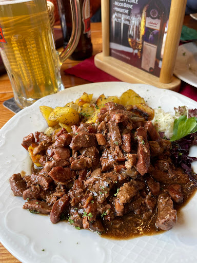 Read moreNaja… Hier muss dringend ganz ganz viel Service am Kunden nachgeholt werden. Ich hab immer angenommen, man ist Gast im Restaurant, hier offensichtlich nicht. Samstag, zeitiger Nachmittag, Biergarten vielleicht zu 30 % gefüllt, wird meine Frau, stark gehbehindert, als erstes angemotzt, warum sie sich an den ersten Tisch am Eingang setzt. Dass dies ein „Tafeltisch“ ist und wir dort als Pärchen nicht sitzen durften, obwohl noch genügend andere freie Tische waren, wussten wir nicht. Als ich unser Auto draußen dann ordnungsgemäß geparkt hatte und ich mir ein Bier und später eine Fassbrause bestellt hatte, wurde mir beim Wegnehmen der Speisekarten durch die Kellnerin der Rest des Bieres über den Tisch und teilweise (ein paar Spritzer) über die Hose gekippt. Ich nahm das relativ locker, aber ich muss nicht mit der Kellnerin diskutieren, ob das Glas (nur noch) halbvoll war und ich deswegen von ihr kein neues bekomme. Sie versprach dann noch den klebrigen Tisch abzuwischen, was sie bis zu unserer Abkehr nicht tat. Letztendlich stand natürlich das umgekippte Glas Bier auf unserer Rechnung und beim Weggehen kam die besagte Kellnerin noch mal an unseren Tisch und wollte sich für ihr Verhalten rechtfertigen. Natürlich ist das nur eine Momentaufnahme, aber zu diskutieren, wenn der Kellnerin ein Missgeschick passiert und dann über 40 Minuten „vergessen“, den klebrigen Tisch abzuwischen und dann nochmals kommen und weiter diskutieren, das...