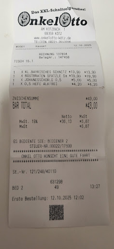 Wir waren wirklich enttäuscht 😞was vielleicht aber auch an unsern Erwartungen lag. Leider hat sich hier mal wieder jemand verwirklicht, der für mittelmäßige Jumboschnitzel, lieblose Beilagen und ungenießbare fertig Saucen zuviel Geld verlangt. Um es auf den Punkt zu bringen, die Schnitzel sind von guter Qualität und auch wirklich riesig, aber die Friteuse macht daraus ein trockenes Stück Fleisch wie aus einer billigen Frittenbude. Leider können die zugekauften Beigaben daran auch nichts mehr ändern.