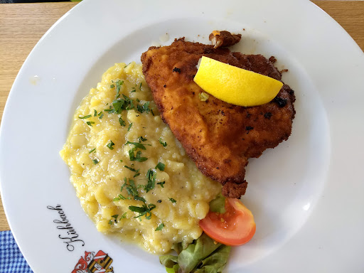 Read moreIch war mit meiner Frau im Biergarten. Wir hatten nicht reserviert und noch den letzten freien Tisch ergattern. Die Bedienung war sofort mit der Speisekarte da. Die Getränke waren ruck zuck am Tisch. Meine Frau hat sich für den Zwiebelrostbraten und ich für das Münchner Schnitzel entschieden. Trotz das der Biergarten voll war, kam das Essen sehr flott. Der Zwiebelrostbraten war auf den Punkt gebraten, die Käsespätzle schön cremig, genau wie es sein soll. Auch das Münchner Schnitzel war ein Traum, hatte einen sehr schönen Senfgeschmack. Ob der Kartoffelnsalat hausgemacht war, glaube ich nicht. Wenn er ein fertig Produkt war, war es eine ausgezeichnete Qualität. So gut muss man ihn erstmal selbst hinbekommen. Und auch das Bier der Brauerei Kühbach spricht für sich, da braucht man keine Münchner Groß Brauerei. Da kann man echt in der Region bleiben. Unser Fazit: WIR KOMMEN...