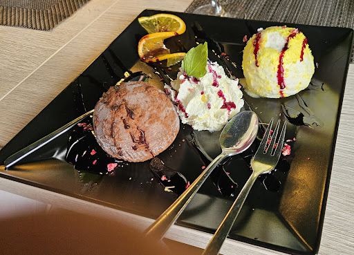 Wir wurden sehr freundlich willkommen geheißen und haben uns sofort wohl gefühlt. Die meisten Tische dieses kleinen und sehr gemütlichen Restaurants befinden sich im ersten Stockwerk. Meine Frau und ich hatten unterschiedliche Gerichte und wir waren beide mit unserem schönen angerichteten Essen zufrieden. Begeistert waren und sind wir allerdings von dem ungewöhnlich herzlichen Service. Egal, ob Inhaber, Inhaberin oder Mitarbeiter – alle sind sehr aufmerksam und um das Wohl der Gäste bemüht.