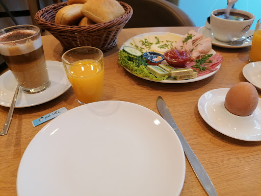Kurz Zusammengefasst: Unsere Bestellung war das Frühstück für 2 (17,99€ bzw. 35,98DM) statt Kaffee wollten wir etwas anderes trinken - möglich nur mit Aufpreis! 2. Bedienung führte Ca. 15 Minuten lang private Telefongespräche anstatt sich mit um unsere umfangreiche Bestellung oder die anderen Kunden zu kümmern 4 x 10g Butter für 4 Brötchen (8 Teile) und 2 Croissants sind zu wenig! der Teller mit dem Belag wirkte sporadisch auf uns, bisschen Kochschinken, Salami, Schnittkäse und Putenraspel, ein Klumpen Mett mit 2 Scheiben Zwiebeln und bisschen Aufstrich. Hier könnte man die Kunden individueller wählen lassen. die Tische um uns herum waren leer Aber dreckig. Die 2. Bedienung empfand das Telefonat offenbar wichtiger als die Tische und Bänke abzuwischen. Bedienung 1 zog sich irgendwann die Jacke drüber und verschwand aus dem Verkaufsraum. Als sie wieder kam lief sie genau an uns vorbei und roch nach kaltem Zigarettenrauch.
