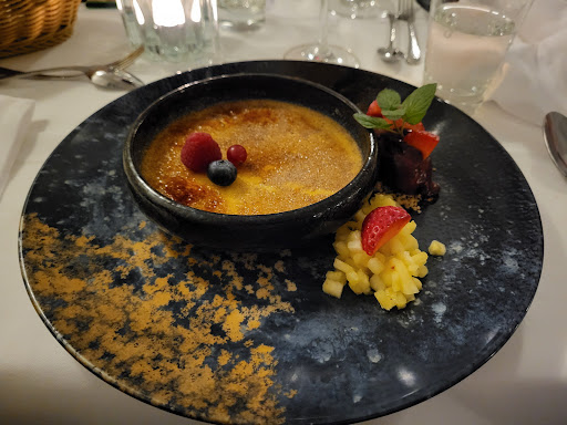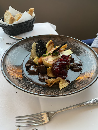 Read moreDie ersten 2 Tage mit sehr wenigen Gästen waren sehr angenehm und gut. Die Küche bemerkenswert und nur deshalb hatte wir überhaupt hier gebucht.||Leider ging am dritten Tag mit gefühlt 50 statt 20 Gästen gar nichts mehr. Tische waren deutlich sporadischer eingedeckt, Brotteller war da, Messer fehlte. Wurde später auch nicht gebraucht, da kein Brot serviert wurde. Dafür lagen bis zum Schluss der Suppenlöffel im Weg, obwohl wir nur eine Suppe hatten.||Auf die Speisekarte haben wir 32 Minuten gewartet. Getränke erreichten uns nach 45 Minuten. Wir sitzen jetzt seit einer Stunde ohne alles, sogar ohne Brotkorb. Nach 90 Minuten hatten wir die Vorspeisen. Leider war die Suppe kalt (kam jetzt nicht unerwartet) und meine Vorspeise nur noch halb so groß wie die letzten Tage, aber selbstverständlich zum vollen Preis.||Hauptgang nach 120 Minuten: Salsa Verde wurde mal kurzerhand durch Cocktail-Tomaten ersetzt (ich mag keine Tomaten und schon gar nicht ungefragt !!!!) und beim anderen Hauptgang fehlte die Gemüsebeilage (Rosenkohl) komplett. Dafür war der Feldhase kalt und roh, also wirklich roh, nur scharf angebraten. Das nach der Vorspeise abgeräumte Besteck hat es immerhin in weniger als 3 Minuten nach dem Anmahnen zu uns geschafft.||Null Verständnis dafür, dass die Kollegen sich am ersten Tag nach der Flaute "einlaufen" müssten, nicht bei 40€ für eine Hauptspeise und je die Hälfte für Vorspeise und Dessert.||Wer sich bei den Damen an der Rezeption beschwert lernt etwas dazu! "Bitte Beschwerden direkt an das Personal!"