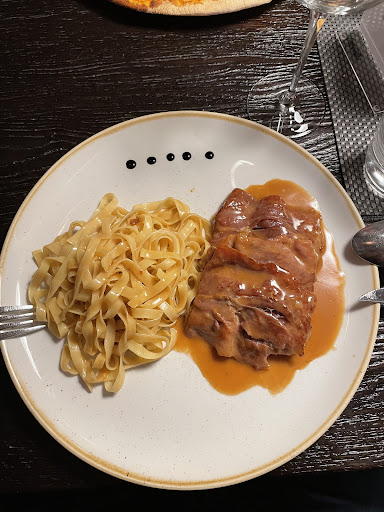 Das Essen (Vorspeise Vitello Tonnato) und der Hauptgang (bei mir war es wie im Bild zu sehen) ein Saltimbocca mit Pasta, war unglaublich lecker! Grade beim Fleisch, welches ja beim Saltimbocca immer sehr dünn ist, besteht die Gefahr, dass es trocken und zäh wird. Aber hier sehr saftig und zart und die Pasta auf den Punkt. Dazu eine sehr dezente und leckere Sauce.