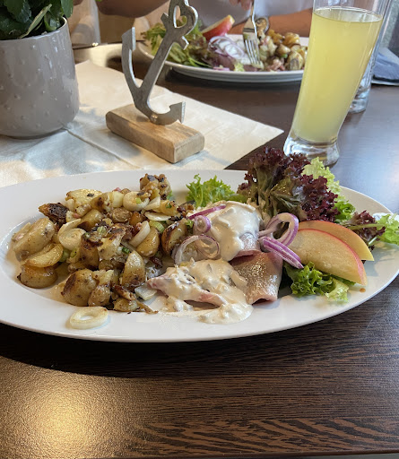 Wir waren nach einem schönen Tag am Wasser auf der Suche nach einem guten Fischrestaurant und fanden das "Nordblick". Aufgrund der exponierten Lage direkt an der Promenade gingen wir von guter Qualität der Speisen aus. Das Ambiente war angenehm und dem Umfeld gut angepasst. Um keine Experimente zu machen, entschlossen wir uns, eine "Kühlungsborner Kutterscholle mit Bratkartoffeln und Salat" zu bestellen. Die Bedienung schien eine polnische Saisonkraft zu sein, was die leicht spärliche Kommunikation erklärt, jedoch freundlich und schnell. Die Getränke kamen zügig. Der Salat war ein Witz. 5 Blätter mit 2 Scheiben Gurke und ein wenig Dressing. Zu allem Überfluss fand sich in einem Salat der Hinterleib eines Insektes undefinierter Art. Die Chininhülle war gut erkennbar und im Inneren war grüner Schleim zu sehen. Bei der kleinen Menge an Salat, sollte doch ein so großes Teil im Vorfeld aussortierbar sein. Teller reklamiert, neuen Salat, neue Kartoffeln und wie gewünscht, die selbe Scholle zurückerhalten. Soweit so gut. Die Erklärung aus der Küche war dann leider etwas merkwürdig und schlecht ausgedacht. Es hätte sich nicht um ein Insekt, sondern um ein Stück Wurzel gehandelt. So so... 😂 Da so etwas mal passieren kann, Schwamm drüber. Jetzt kommt der größere Fehler. Die Schollen waren lediglich von einer Seite paniert und gebraten. Die andere, unten liegende Hautseite, war quasi roh. Es scheint so, als würden die Fische aufgrund der großen Nachfrage nur von einer Seite entsprechend gebraten, dann in den Warmhalter gepackt und irgendwann rausgegeben. Dadurch trocknet die ungebratene Seite stark aus. Auf dem Teller kommt die rohe Seite nach unten, der dumme Touri wird's sicher nicht merken. Da wir nicht zur Kategorie Touri gehören und schon 1, 2 Schollen in unserem Leben gegessen haben, fiel uns das schon auf. Übrigens gehört zum Fisch auch ein Fischmesser. Mal so am Rande. Für 16,80€ pro Scholle in dieser Qualität zu teuer. Die Bratkartoffeln waren übrigens absolut ok. Immerhin wurde die Scholle mit "Fleischbeilage" nicht berechnet. Das versöhnt dann halbwegs. Liebes Team vom "Nordblick", kocht bitte so, dass es sowohl dem Fisch, als auch euren Gästen gerecht wird. Denn die zahlen euren Lohn und ihr tragt auch zu einem gelungenen Urlaub bei. Vielleicht kommen wir einmal wieder und bestellen die "Kühlungsborner...