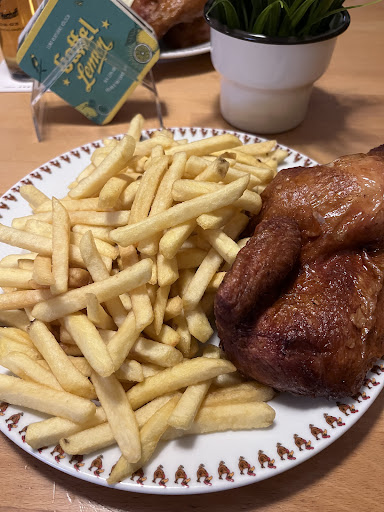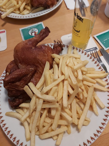 Read moreEin schöner rustikaler Laden, bei dem man zunächst vermuten würde, dass dieser recht weit vom Schuss liegt. Doch wenn man mal an einem Freitag abend (sofern ich mich erinnere) vorbei fährt, sieht man auch mal eine schier endlose Schlange an Menschen, die sich offenbar, wie ich hörte, teils stundenlang anstellen. Dass ein Laden so gut ist, dass Menschen bereit sind so lange zu warten, konnte ich kaum glauben. Davon musste ich mir also erst selbst ein Bild machen. An einem Montag machten ich und meine Begleitung uns also auf dem Weg. Zu unserem Glück gab es keine Schlange bis nach draußen. Drinnen mussten wir uns trotzdem auf das Warten einstellen. Dies blieb jedoch human und ist durch die große Beliebtheit nachvollziehbar. Das halbe Hähnchen und die Fritten waren sehr sehr gut gelungen. Knusprig, lecker mariniert und perfekt passend zum rustikalen Ambiente des Ladens. Das Fleisch war zart und saftig von innen, die Fritten richtig gewürzt und die Portionen sättigend. Im Großen und Ganzen ist der Laden sehr zu empfehlen. Ich komme in Zukunft gerne wieder, auch wenn ich nicht weiß, ob ich geduldig genug wäre mehr als eine Stunde anzustehen. Aber das ist dann eher...