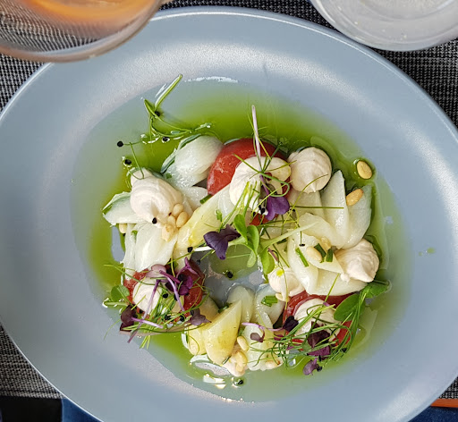 Menü des Monats Gambas in Knoblauchöl Chili / Kirschtomaten / Baguette Ibericolachse Lachs vom Ibericoschwein / Kräuterkruste / Möhren-Ingwercreme / Wirsinggemüse / Dauphinekartoffeln / Jus Crème brûlée des Tages Obstgarnitur / Sorbet 49,90 € Meine Frau und Freundin/Freund wählten die Paprikacreme-Suppe und das Zanderfilet auf Risotto. Fazit: sehr geschmackvoll angerichtet, super gewürzt und geschmacklich „top“ bei einem für diese Qualität gutem Preis-/Leistungsverhältnis. Wir kommen sehr gerne wieder, eine gastronomische „Perle“ im Bergischen…. Der Koch/Chef ist ein „indischer Landsmann“, deshalb ist diese Kulinarik für mich umso bemerkenswerter. Die Weinkarte ist übrigends sehr gut, Weine können auch käuflich erworben werden. Und das alles „in der Delling“, Humor - Hinweis vom Chef-Koch:...