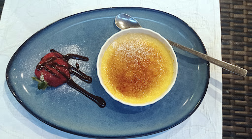 Wir sind über Tripadvisor auf dieses Restaurant aufmerksam geworden und sind ohne große Erwartungen dort hin. Wir durften bei Ankunft zwischen einem Platz im Haus oder im Wintergarten wählen. Wir haben uns für den beheizten Wintergarten entschieden, welcher super angenehm und echt klasse ist. Auch wurden wir herzlichst begrüßt und auch unser Impfstatus wurde kontrolliert. Die Plätze haben alle reichlich zum Nachbartisch Abstand! Zum Essen: Meine Frau hatte als Vorspeise Gambas und ich Bruschetta. Selbst gemacht und sehr köstlich. Zum Hauptgang habe ich mich für den Syrtaki-Teller entschieden (alles auf der Karte klang köstlich und ich konnte micht nicht für eins entscheiden) und meine Frau hatte Rinderfiletpfännchen. Dies war ein TRAUM! Alles super zart, geschmacklich perfekt. Auch der Rose war super lecker. Leider habe ich keinen Nachtisch mehr runter bekommen, dennoch haben wir uns einen Schokonachtisch gegönnt. Auch dieser sah super lecker aus und meine Frau kann dies geschmacklich auch bestätigen. Das Personal war sehr zuvorkommend und hat sich immer nach dem Wohlbefinden erkundigt, ohne aufdringlich zu sein. Auch kleine Späßchen wurden gemacht.