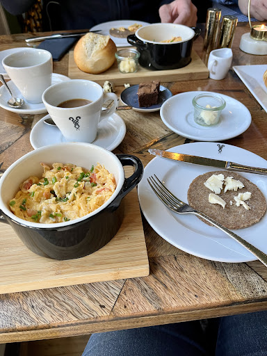 Read moreDas Café ist sehr liebevoll gestaltet und gemütlich. Die Servicekräfte waren freundlich und aufmerksam. Wir waren zum Frühstück dort. Es gibt verschiedene Varianten an Frühstücken. Z.B. italienisches, französisches, rheinisches oder deutsches Frühstück. Ich habe mich für das deutsche Frühstück entschieden, da mir die anderen Varianten, von den Zutaten her, nicht zusagen. Oliven oder Manchegokäse zum Frühstück ist nichts für mich. Aber das ist ja Geschmackssache. Das deutsche Frühstück beinhaltete ein Brötchen, eine Scheibe Weißbrot und eine Scheibe Schwarzbrot. Dazu gab es Käse, rohen und gekochten Schinken, Marmelade, ein gekochtes Ei, eine saure Gurke, sowie Tomaten- und Gurken Scheiben. Da ich keine Marmelade mag, habe ich nachgefragt, ob ich etwas mehr Tomate haben kann. Das war kein Problem. Das Frühstück war sehr schön angerichtet und sah sehr appetitlich aus. Auch die Gerichte von anderen Gästen sahen alle sehr schmackhaft und liebevoll angerichtet aus. Die Getränke müssen extra bezahlt werden. Der Kaffee war sehr stark, aber zum Wachwerden richtig😃 Als wir dort waren, waren alle Tische belegt und die Geräuschkulisse war durch das Stimmengewirr ziemlich laut. Dazu lief im Hintergrund noch Musik. Die Lieder konnte man nicht erkennen, aber man spürte den Bass. Das war für mich nicht so angenehm, da man sich nicht normal unterhalten konnte. Insgesamt fand ich es aber recht schön und komme bestimmt...